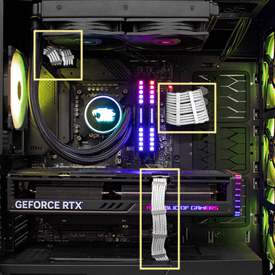 [White] - Sleeved 24-pin Motherboard + 8-pin CPU + VGA Power Extension Cables (Includes Professional Wiring)